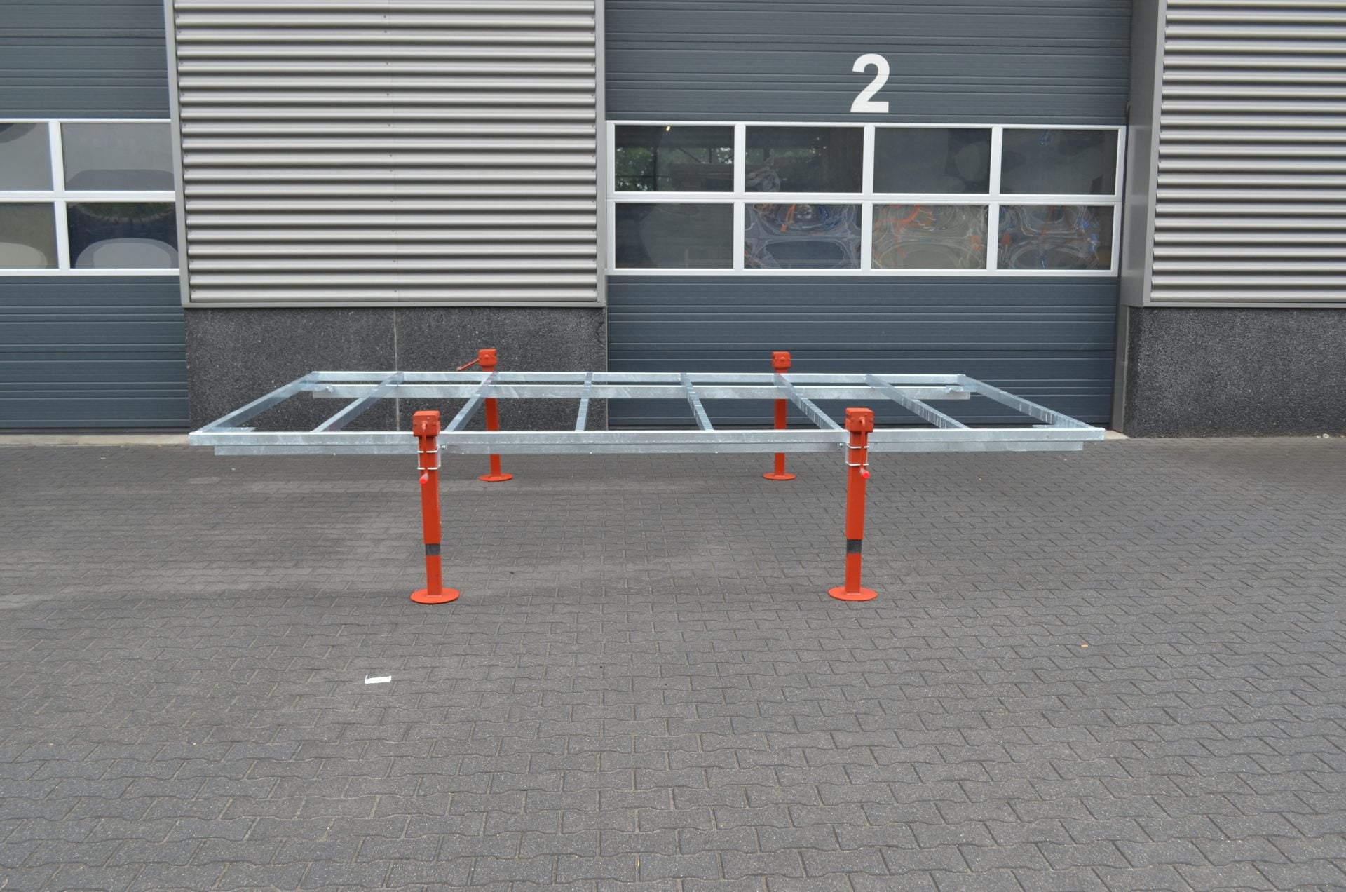Zusätzlich besteht die Möglichkeit, einen Anhänger mit mehreren zusätzlichen Decks gleicher Größe zu kombinieren. Die Decks sind mit vier Stützen von jeweils 3.000 kg Tragkraft erhältlich. Das schafft maximale Flexibilität für modulare Bau- oder Wohnprojekte.