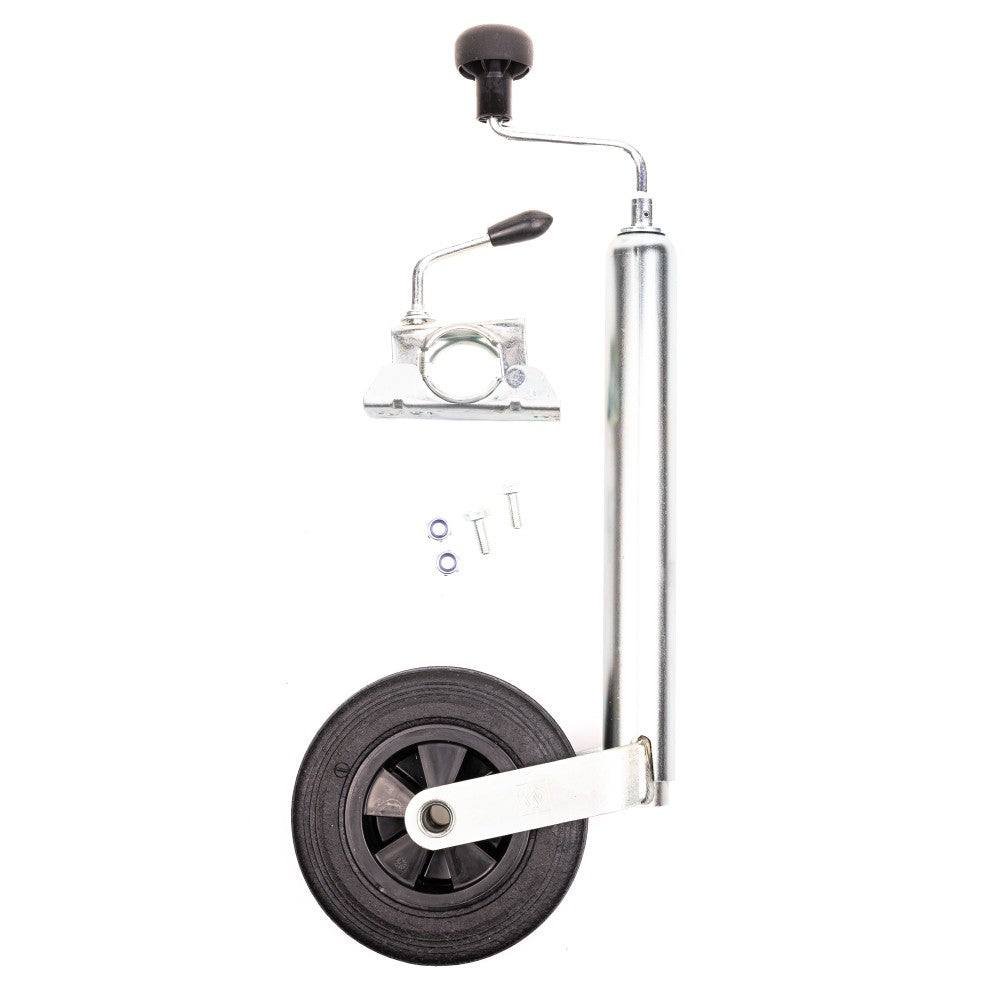 Das Stützrad ermöglicht ein einfaches rangieren beim an- und abkuppeln des Anhängers. Der Rohrdurchmesser beträgt 4,8 cm. Das Laufrad mit Vollgummibereifung und Kunststofffelge hat einen Durchmesser von 20 cm. Die Belastbarkeit im Stand beträgt bis 150 kg. Im Lieferumfang ist je nach Ausführung die passende Halterung (Klemmschelle) und das Montagematerial enthalten.